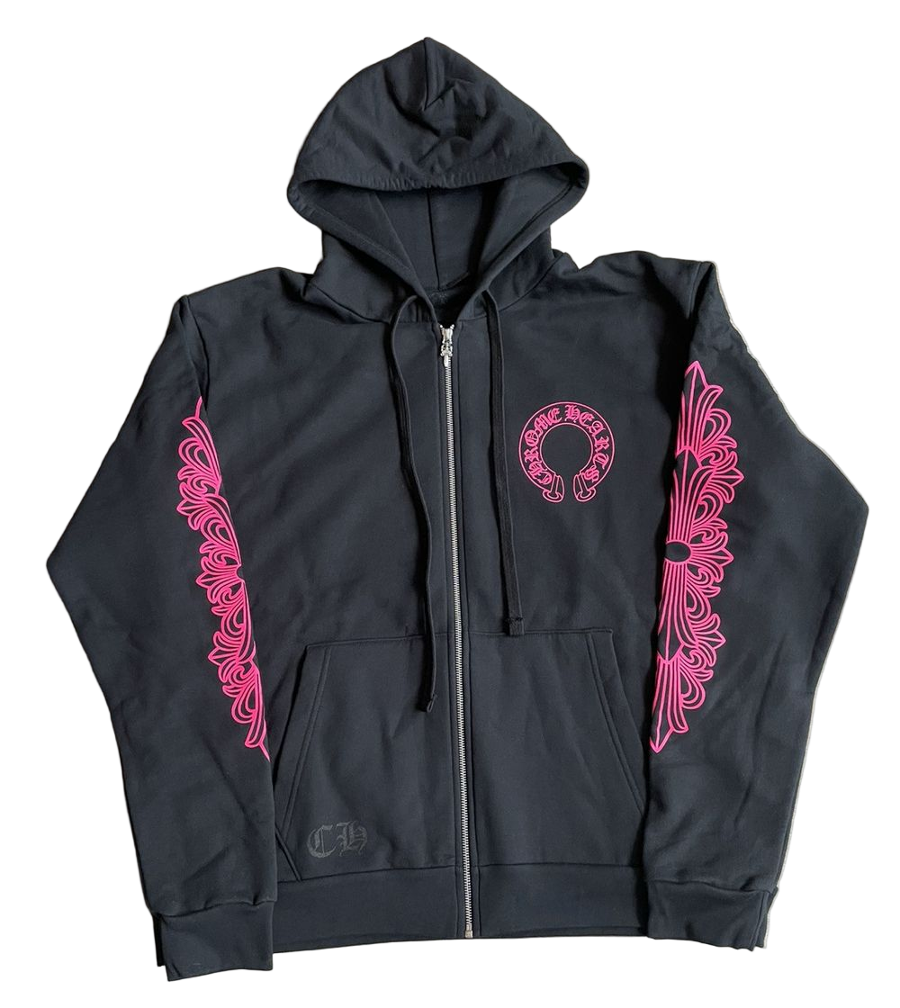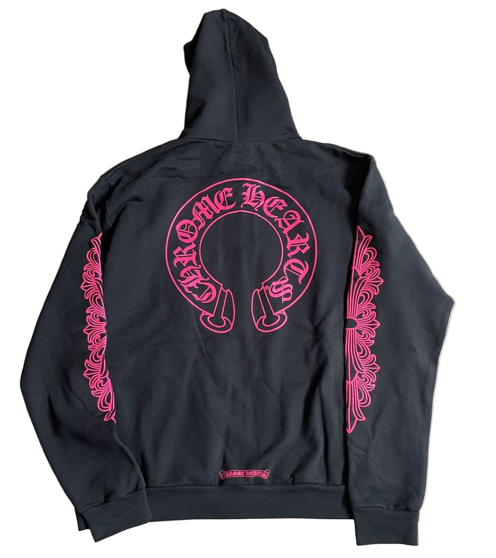 Chrome Hearts "Floral Horseshoe" Zip Up Hoodie Black/Pink